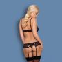De set bestaat uit een bralette bh, een jarretelgordel en een bijpassend stringetje. De set is gemaakt van heerlijk zacht multistretch kant. Het kant heeft een romantisch rozen patroon. De bralette bh heeft ongevoerde cups die verleidelijk doorschijnend zijn. De cups zijn uitgevoerd zonder beugels voor een natuurlijke buste. Over het decolleté lopen speelse bandjes en tussen de cups zijn sprankelende sieraden aangebracht. Zo'n zelfde sieraad is ook aangebracht aan de voorkant van de jarretelgordel. De jarretel heeft 4 verstelbare bandjes om kousen aan te bevestigen.