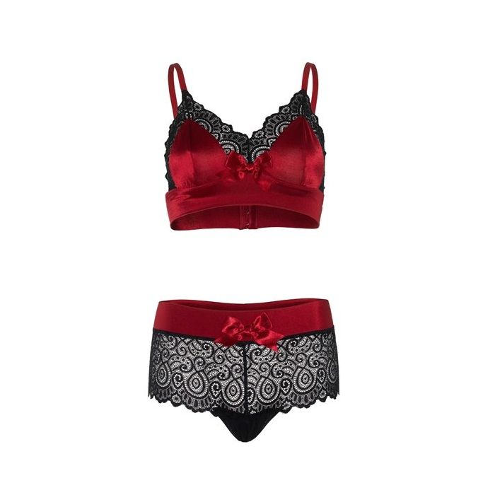 De Satin Bralette en Short van Leg Avenue is een super schattig lingerie setje. Het setje bestaat uit een bh en een bijpassende boyshort. De beugelvrije bh is gemaakt van zacht en soepel satijn in een verleidelijk rode kleur en is afgewerkt met een grote, satijnen strik en sierlijk zwart kant langs de randen. De bh heeft verstelbare schouderbandjes voor een perfecte pasvorm. De boyshort heeft een brede tailleband gemaakt van rood satijn en is verder gemaakt van doorschijnend kant en is voorzien van een katoenen kruisje.