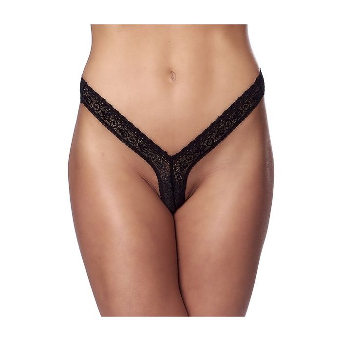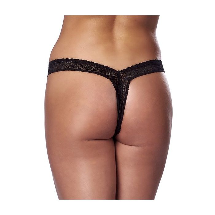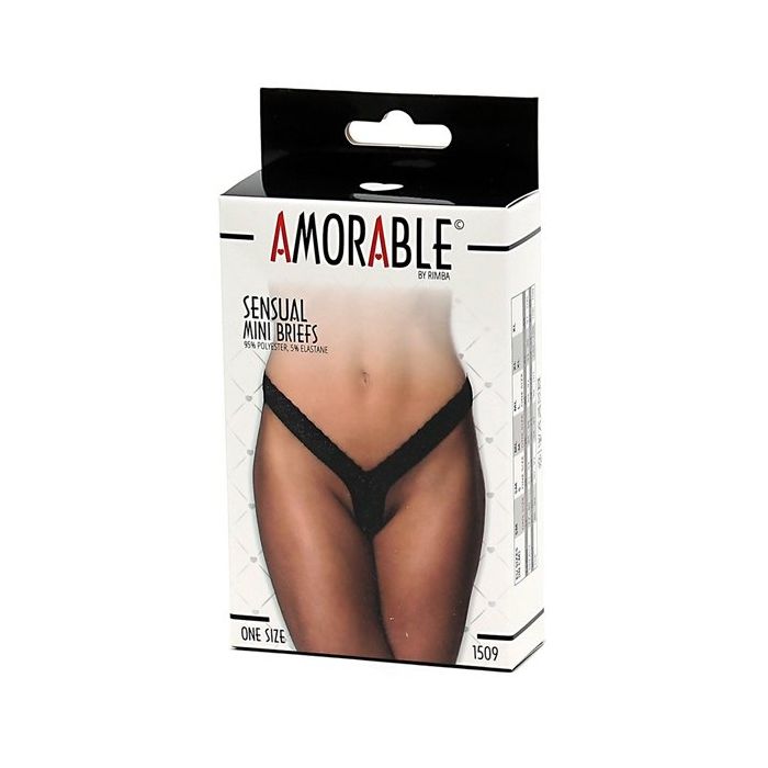 Het Sensuele Mini Slipje - Zwart uit de collectie van Amorable by Rimba is gemaakt van zacht en soepel, licht doorschijnend kant. De string bestaat uit smalle stroken kant, waardoor jouw meest intieme zones maar net bedekt zijn. In deze spannende string slip komen je heupen en billen prachtig tot hun recht.