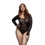 De Sexy Kanten Body - Zwart - Queen Size is een prachtige creatie uit de collectie van Baci Lingerie. De body is geheel gemaakt van heerlijk zacht en soepel kant. Het kant zit nauwsluitend rond jouw geweldig mooie lichaam en heeft een romantisch patroon van bloemen. De body heeft lange mouwen en een open rug. In de nek is de body vast te strikken met een lint.