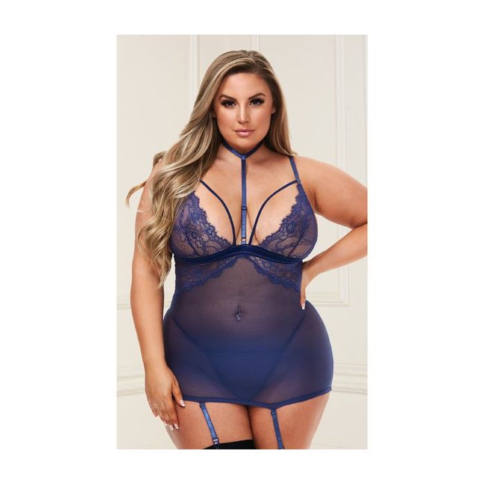 Sexy Mini Jurk en String Set - Queen Size - Blauw