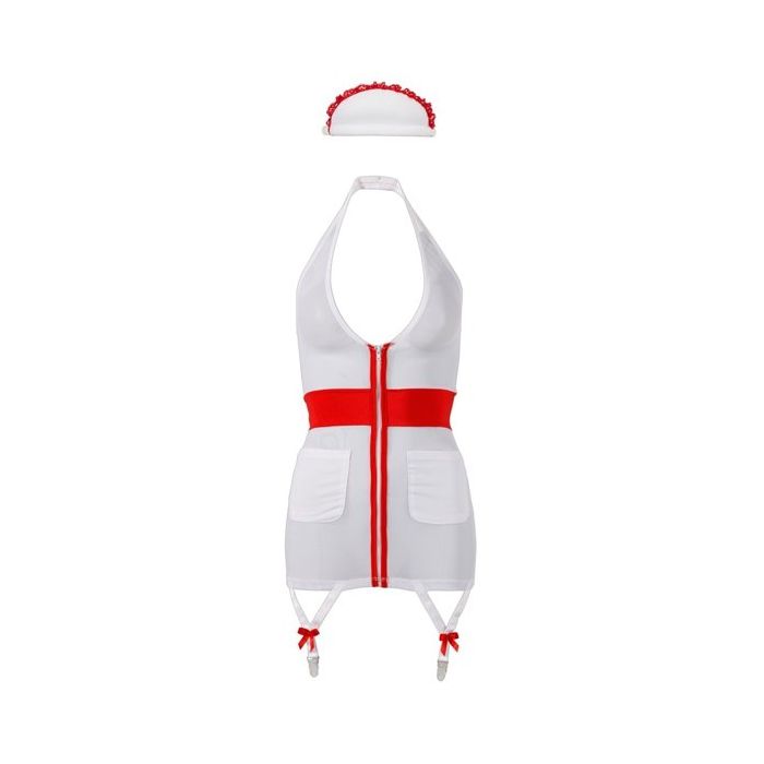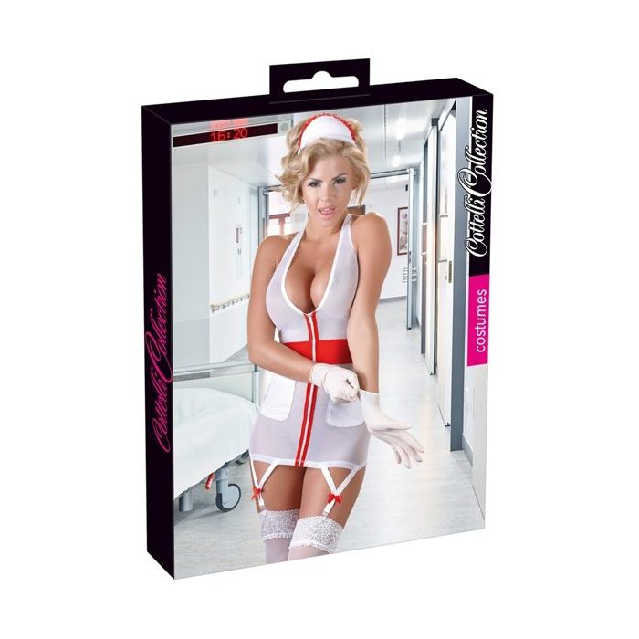 Spannend rollenspel in de slaapkamer begint bij een sexy kostuum, zoals het Sexy Zuster Kostuum van Cottelli Collection. Dit kostuum bestaat uit een strak, wit mini jurkje met een halter model. De witte stof is licht doorschijnend en in de voorkant is een rits gezet voor een vlotte striptease act. Het jurkje is afgewerkt met rode accenten en jarretelbandjes aan de voorkant.