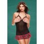 Show Me Schoolmeisje Chemise - Zwart/Rood