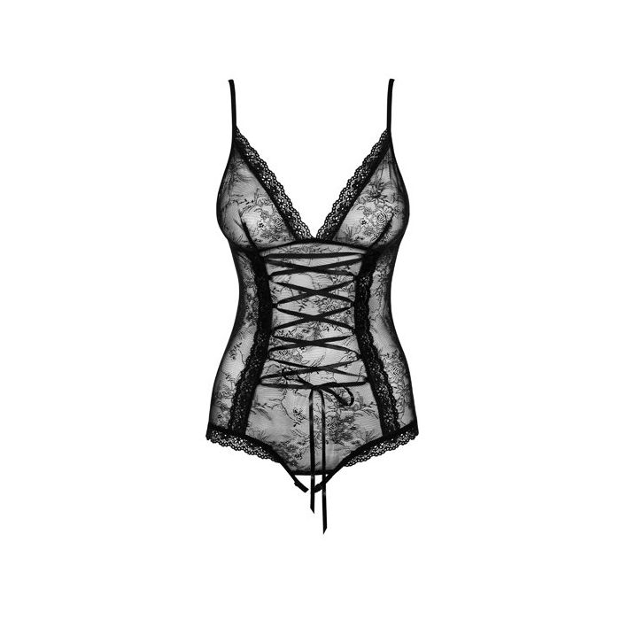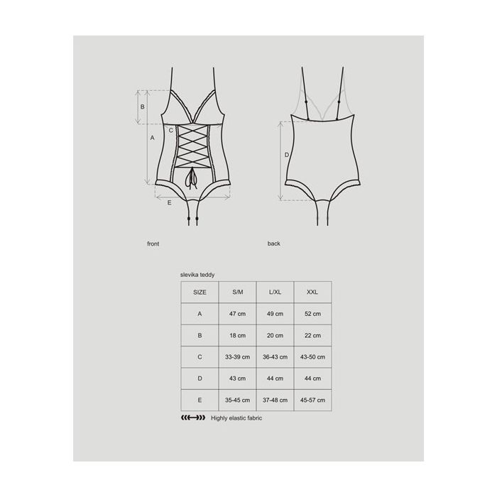 De verleidelijke Slevika Teddy van het merk Obsessive is gemaakt om dromen uit te laten komen. Deze nauwsluitende body is gemaakt van doorschijnend bloemen kant met een prachtig bloemen patroon en sexy details. Het materiaal voelt heerlijk zacht en is van multistretch kwaliteit voor een perfecte pasvorm. Het decolleté is diep uitgesneden en afgewerkt met sierlijk randjes. De voorkant is afgewerkt met een rijglint en verticale randen van kant voor een optisch slankere taille. Het kruis is open en voorzien van verstelbare bandjes.