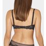 Tussen de natuurlijk vormende cups is een kleine uitsnede gemaakt met een stijlvol strikje erboven. De bh heeft bredere bandjes met geribbelde structuur voor een verstelbare pasvorm die nog beter blijft zitten en op de rug is de bh op maat te maken met de driedubbele haaksluiting.