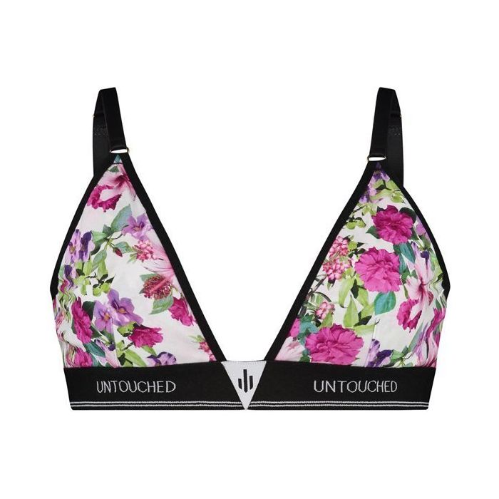 De Untouched Flowers - Bralette is een sportieve beugelvrije bh. Deze bh heeft triangel cups en een stevige elastische band die medium ondersteuning biedt. De cups zijn bedrukt met een deep-print foto print van bloemen. De bralette bh is gemaakt van top kwaliteit materialen voor een geweldige pasvorm en hoogwaardig comfort.