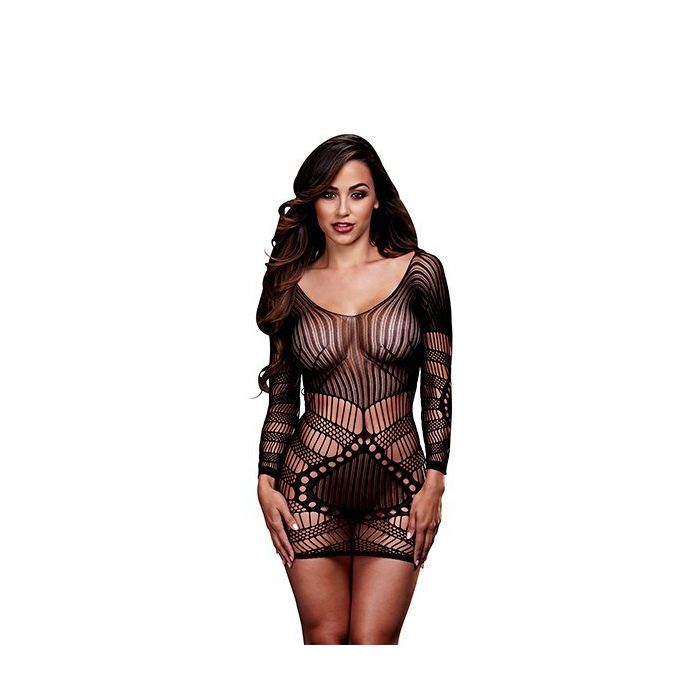 Laat jouw lichaam super sexy uitkomen in het Verleidelijk Longsleeve Mini Jurkje van Baci. Dit spannende jurkje is gemaakt van zachte stretch stof dat is geweven voor een doorzichtig effect. De geweven stof heeft diverse structuren en patronen voor een speels design. Het jurkje heeft een ruime hals en lange mouwen en zit verleidelijk strak rond jouw vrouwelijke vormen.