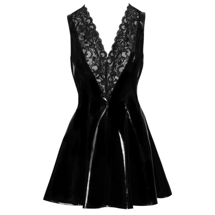 Vinyl Jurkje met V-Vormige Halslijn - Zwart