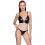 Ga voor een verleidelijk glanzend duo, namelijk de Vinyl Lingerie Set 2-Delig - Zwart. De set bestaat uit een bh en bijpassende string in prachtig lakglans waarbij je vrouwelijke vormen goed benadrukt zullen worden. Dankzij de vetersluiting krijgt de set een speelse look. Door de verstelbare bandjes kun je gemakkelijk de set aanpassen naar jou lichaam. De bh heeft zachte cups voor een geweldig draagcomfort.