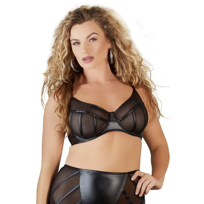 Wetlook Plus Size Beha - Zwart
