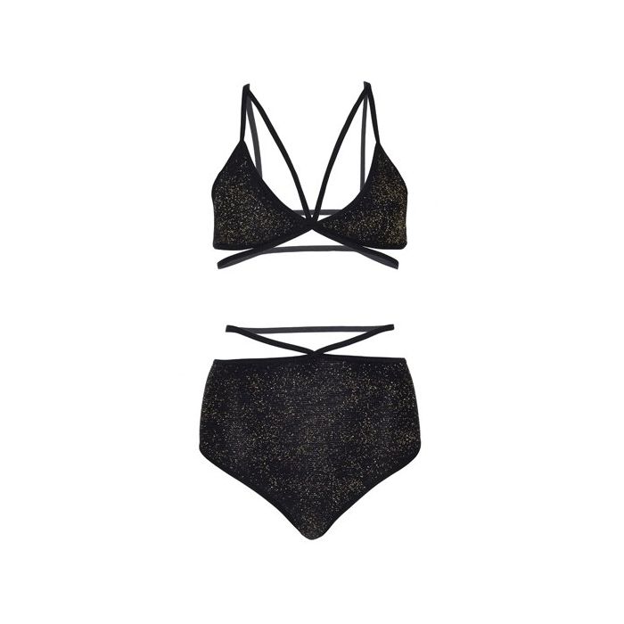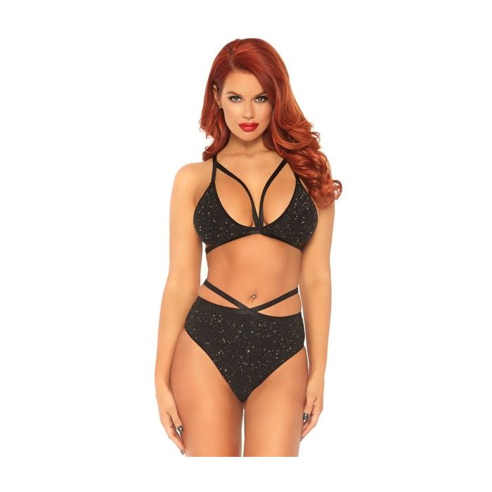De Zwarte Lingerie Set met Glinster Effect is een erg mooie set van Leg Avenue. Deze tweedelige set bestaat uit een bh en een slip, beiden gemaakt van zachte stretch materiaal, voorzien van metallic gouddraad voor een feestelijk effect.